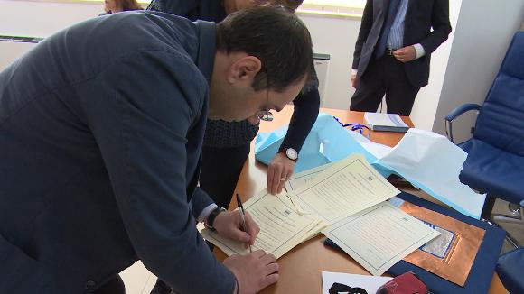 Il consigliere Aliandro nel commentare i lavori degli studenti sul...