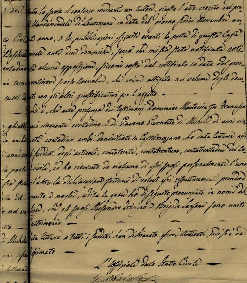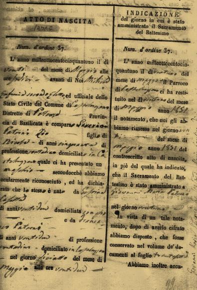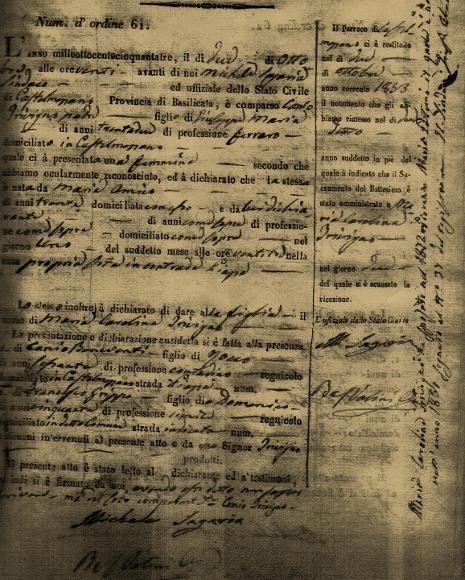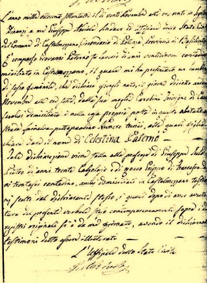 4 Registro degli atti di matrimoni, numero d’ordine 19, conservato presso l’Archivio del comune di Castelmezzano.