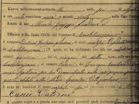 Sui solchi delle “vie dell’avvenire”3 tracciati lungo le rotte dell’oceano, uomini donne e bambini imbarcavano i propri sogni nella speranza di una vita nuova. Su una di queste carrette del mare, in una livida mattinata d’inverno del 1883, salì a bordo Giovanni Paternò da Castelmezzano (foto 01). La sua scelta fu dettata dalla necessità di cercare altrove ciò che mancava nel proprio abitato, la felicità di vivere una vita senza affanni, la necessità di assicurare un futuro alla propria famiglia. Una famiglia numerosa tirata su insieme alla moglie Carolina (foto 02), una donna forte e determinata, con cui si unì in matrimonio il 25 dicembre del 18724 (foto 03). Un’unione che resistette alle intemperie della vita, e che si arricchì dei sette figli Celestina, Saverio, Canio, Giuseppe (foto 04, 05, 06, 07), Michel, Anhony e Christina (questi ultimi tre nati in America). Il sacrificio pagato da Giovanni, semplice muratore avviato all’attività edilizia dal padre Saverio, fu ampiamente ripagato dall’impero che i propri figli seppero costruire in quell’America tanto agognata e tanto temuta.