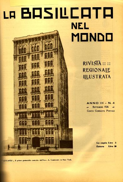 5 La Basilicata nel mondo, rivista mensile illustrata, diretta da Giovanni Rivelli, anno 1924, pp.223-227; anno 1925 pp. 108-111; anno 1926 pp. 369-375; anno 1927 pp. 181-189 e 282-284.