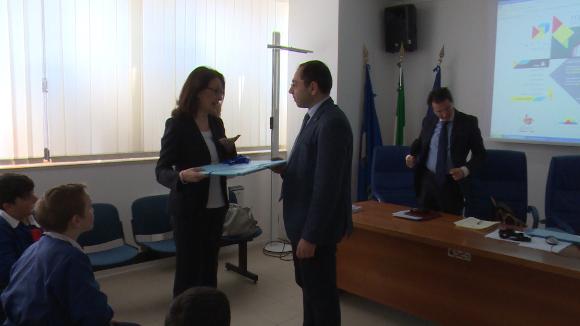Il consigliere Aliandro nel commentare i lavori degli studenti sul...